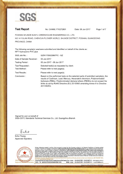 PVC Pipe SGS Test Report